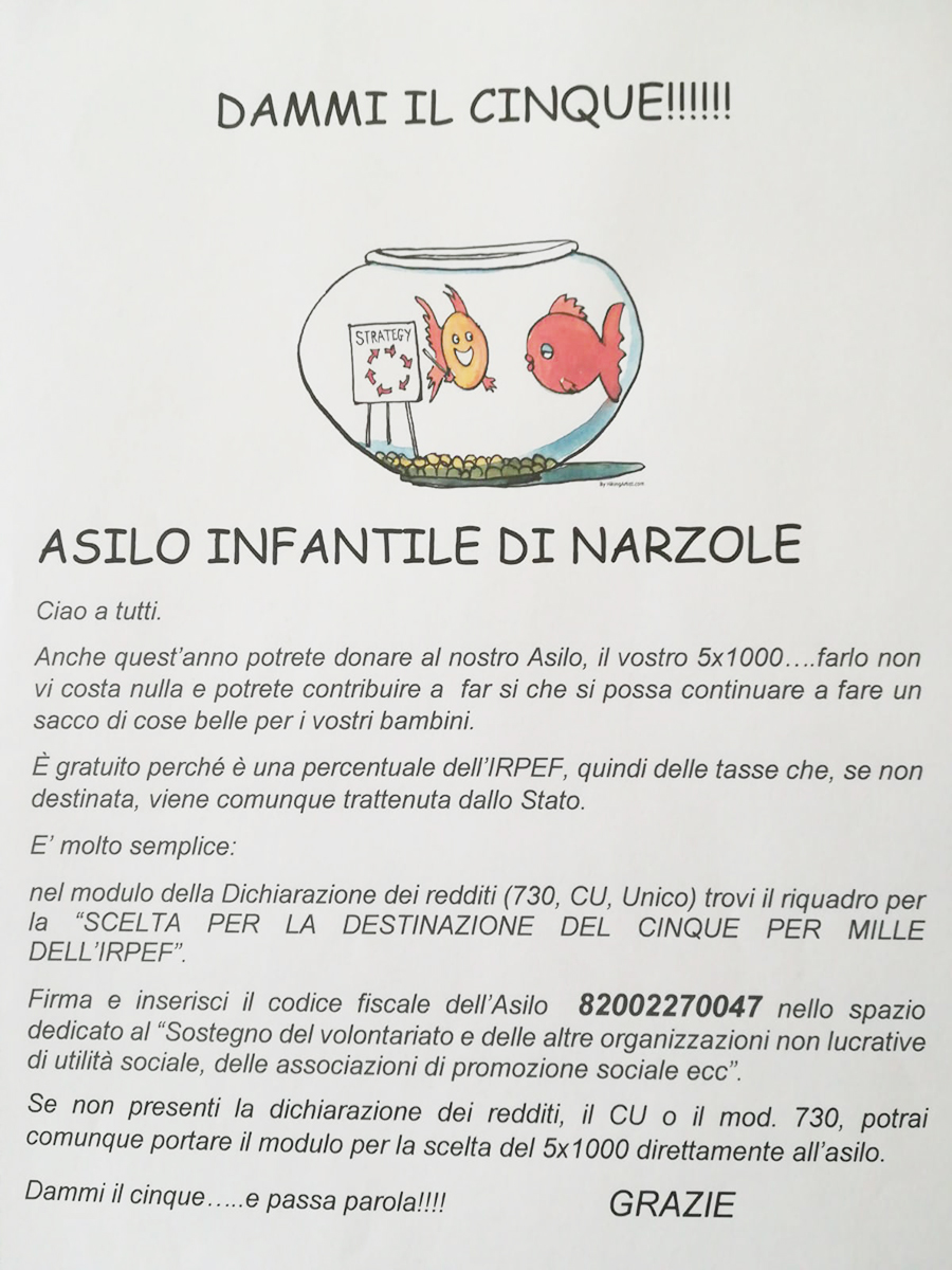 Anche quest'anno potete donare il 5x1000 alla nostra Scuola dell'infanzia, per fa sì che sia possibile continuare a fare un sacco di cose belle per i bambini.